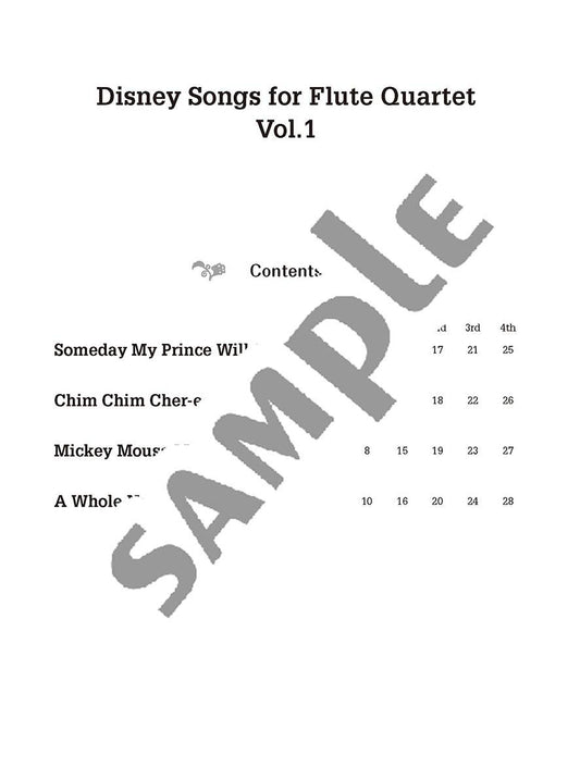 Disney Songs for Flute Quartet Vol.1(Intermediate) Sheet Music Book /English Version