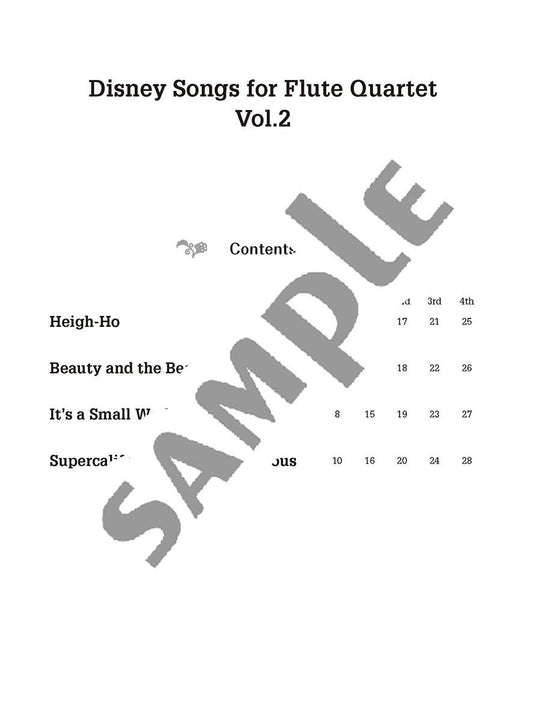 Disney Songs for Flute Quartet Vol.2(Intermediate) Sheet Music Book /English Version