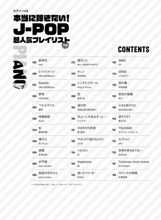 J-POP HIT CHART Piano Solo(Intermediate) Sheet Music Book