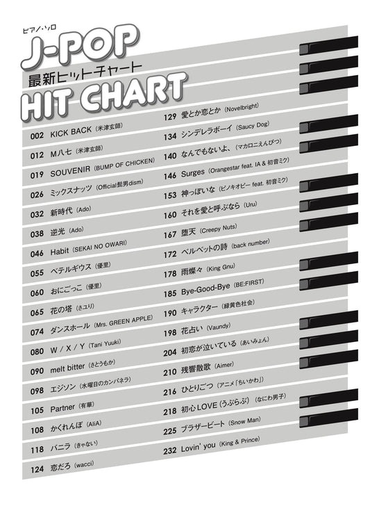 J-POP Hit songs 2022-2023 Piano Solo(Easy) Sheet Music Book
