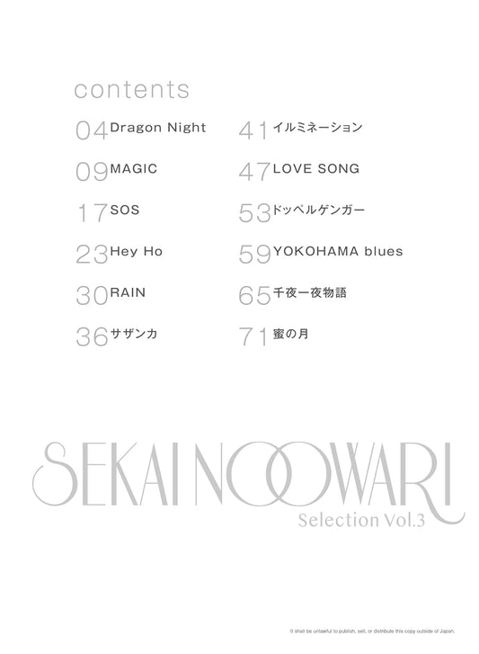 SEKAI NO OWARI Selection Vol.3 - Piano Solo (Intermediate) - Sheet Music Book
