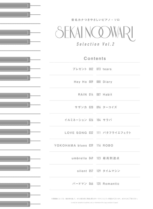 SEKAI NO OWARI Selection Vol.2 - Piano Solo with Note Names (Easy) - Sheet Music Book
