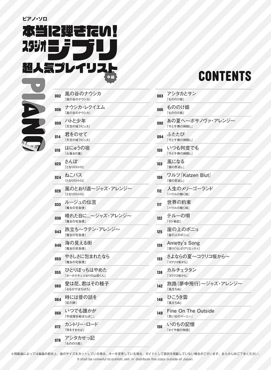 Studio Ghibli popular songs for Piano Solo that you really want to play!(Intermediate) Sheet Music Book