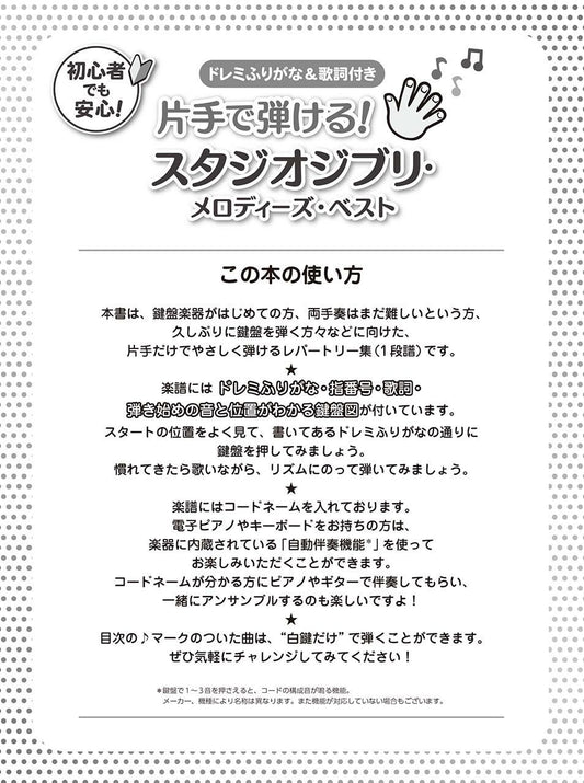 Studio Ghibli Melodies Best for One hand Piano Solo(Beginner) Sheet Music Book