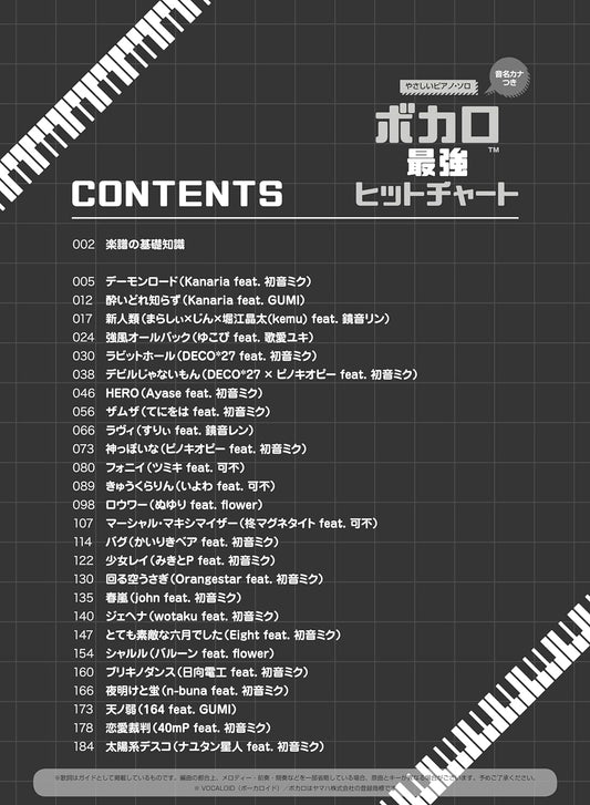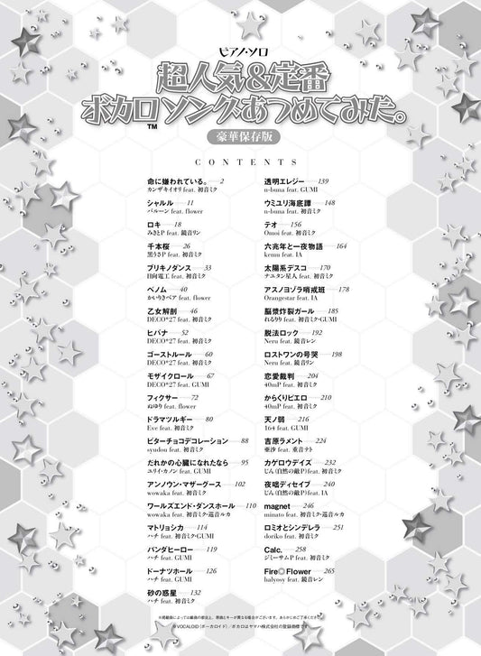 The collection of Vocaloid songs Piano Solo(Intermediate) Sheet Music Book