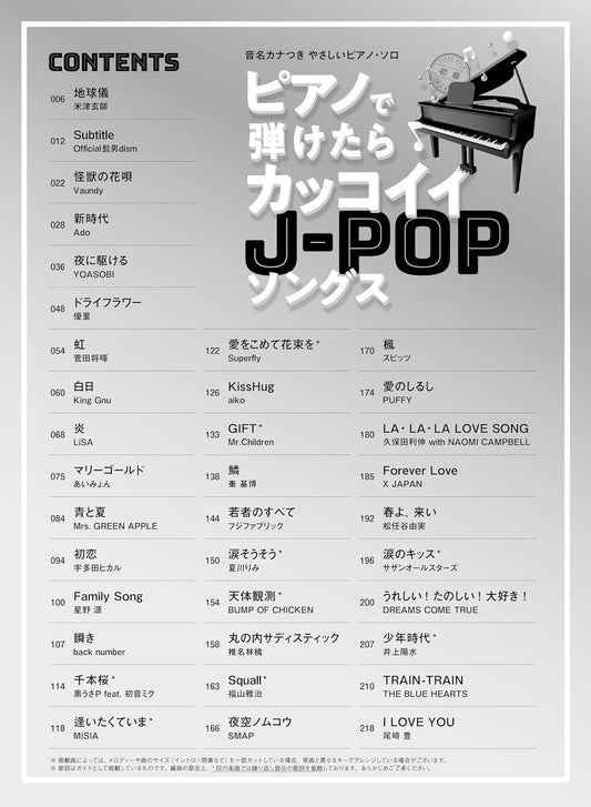 The collection of J-POP songs Piano Solo(Intermediate) Sheet Music Book
