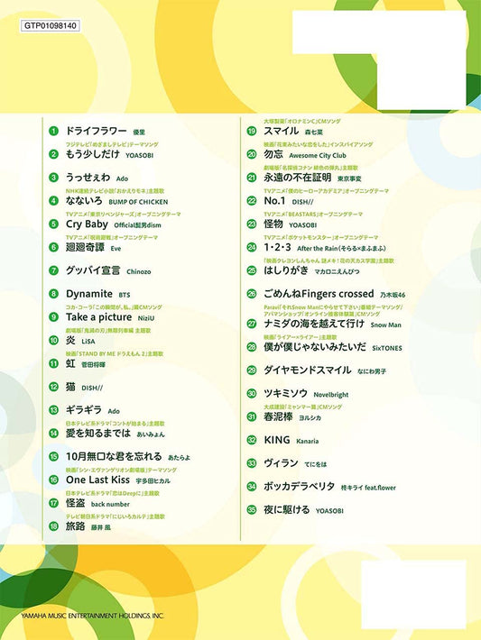 The Best Songs from the first half of 2021 : Piano Solo(Easy) Sheet Music Book