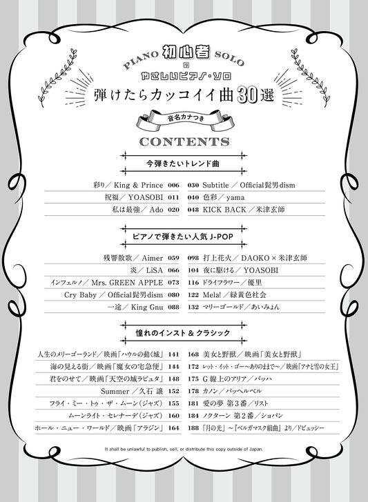 The collection of Cool J-pop for Piano Solo(Easy) Sheet Music Book
