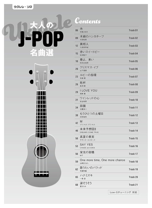 The collection of J-POP songs Ukulele Solo for Grown-ups w/CD(Demo Performance) Sheet Music Book
