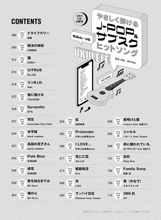 J-POP and Music streaming service Hit songs Ukulele Solo(Easy) w/CD(Demo Performance) Sheet Music Book