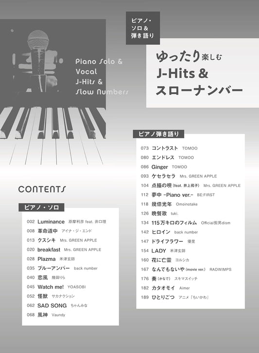 Relaxing J-Hits & Slow Numbers - Piano Solo / Piano and Vocal (Intermediate) - Sheet Music Book