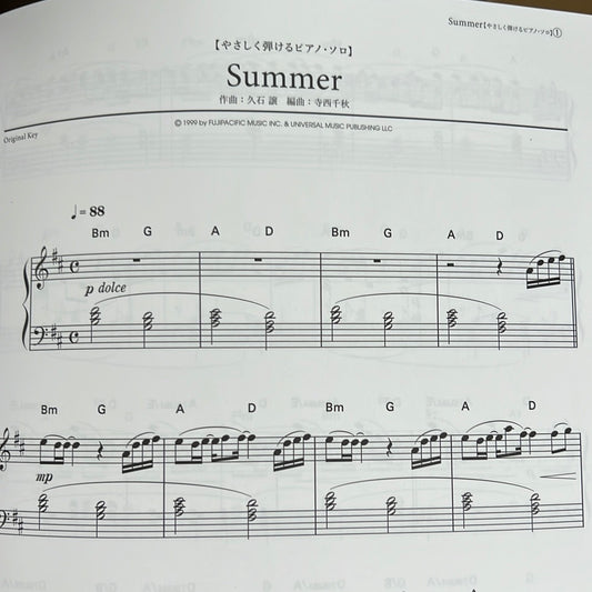 Joe Hisaishi~Summer/Kikujiro~ Klavier Solo (Leicht) Notenbuch