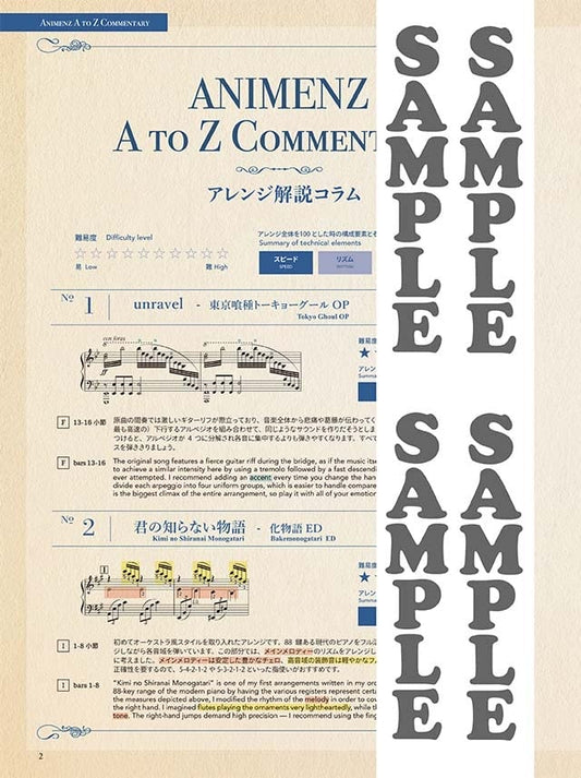 Animenz Notenbuch: Beliebte Anime-Songs 2 für Klavier Solo (Fortgeschritten)