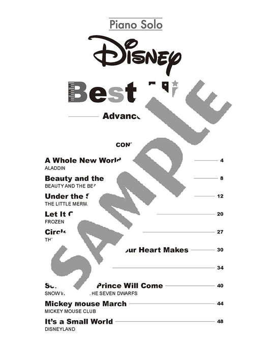 Disney Best Hit 10 Piano Solo (Fortgeschritten)/Englische Version
