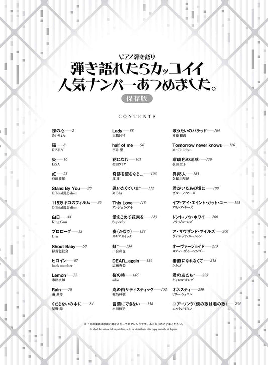 Standard J-POP Collection Notenbuch für Klavier und Gesang (Mittelstufe)
