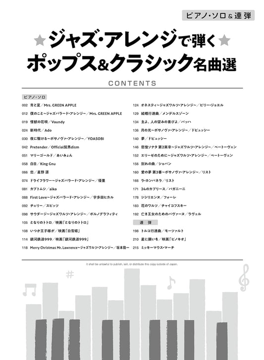 Jazz Arrangements of Pop & Classical Favorites - Piano Solo / Piano Duet (Upper-Intermediate) - Sheet Music Book