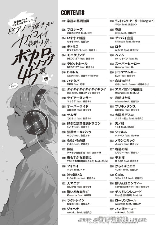 Cool Vocaloid Songs 45 with Note Names - Piano Solo (Easy) - Sheet Music Book