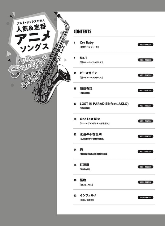 Anime Songs Collection for Alto Saxophone Solo w/CD Sheet Music Book