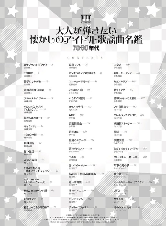 Japanese Old Pops(Kayokyoku) "70's and 80's" Piano Solo Sheet Music Book