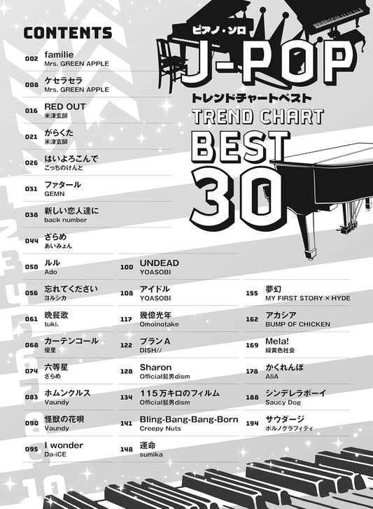 J-POP Trend Chart Best 30 for Piano Solo(Intermediate) Sheet Music Book