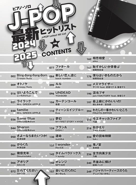 Latest J-POP Selection 2024-2025: Piano Solo (Intermediate) Sheet Music Book