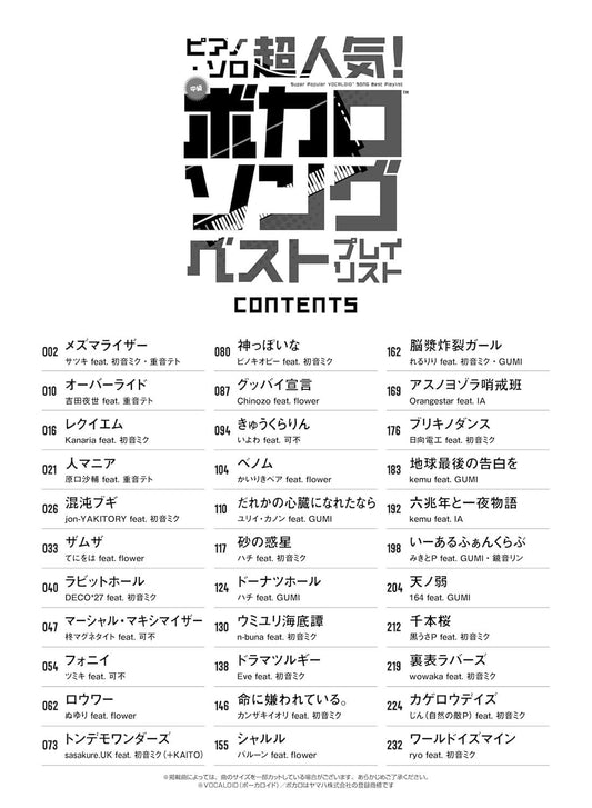 Super Popular! Vocaloid Songs Best Playlist: Piano Solo(Intermediate) Sheet Music Book