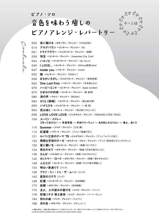 Healing Piano Arrangement repertoire Piano Solo(Upper-Intermediate) Sheet Music Book