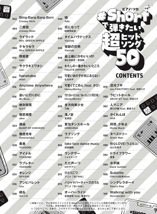 Hit J-POP Songs Collection 2022 Piano Solo(Easy) Sheet Music Book