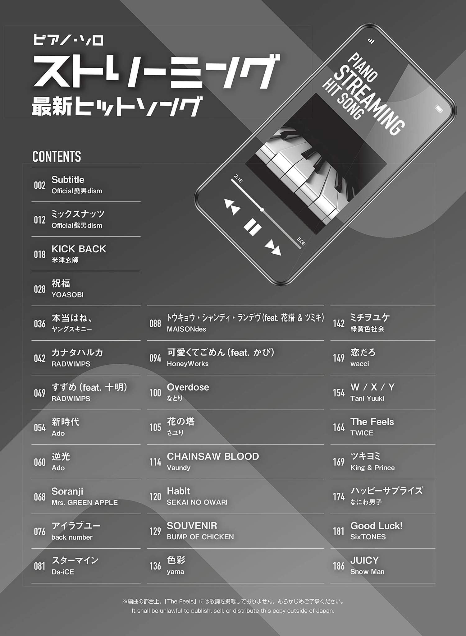 Popular Songs in Music streaming services for Piano Solo(Intermediate) Sheet Music Book